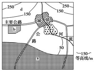 小题1:青稞生长在青藏高原地区,不会在东南沿海地区,A错。b地距城镇较远,紧邻公路,交通便利,适宜发展乳畜业,B错。c地位于近郊,靠近河流,适宜种植花卉,C错。d地位于丘陵地区,适宜发展林果业,D对。