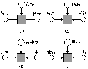 2、单选题  下图表示工业区位选择的4种模式,图中圆圈大小表示各因素对工业区位选择影响程度的强弱。
