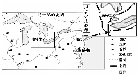 (1)简述18世纪底特律成为重工业中心的区位优势。(8分)