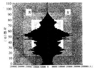 2、单选题 图是我国某城市第六次人口普查的人口金字塔图,读图回答下列各题