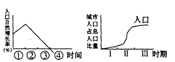 2、单选题 读某国城市化进程和人口自然增长率变化曲线图,完成问题。