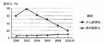 1、单选题 抚养比是指人口中非劳动年龄人口数与劳动年龄人口数之比。当总抚养比小于等于50%时称为人口红利期。下图示意福建省2000-2010年抚养比变化,读图完成下面问题。