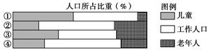 4、单选题 下图是某四国人口构成示意图,回答题。