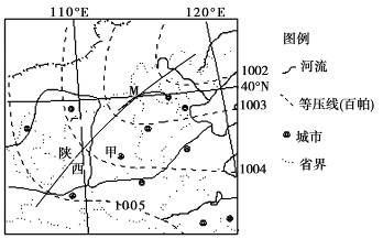 (1)图中M为锋线,简述此时甲地的天气状况。(4分)