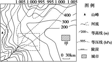 (4)此时城市所在地风向为______,如图中气压系统移动速度为120km/天,则在此之后24~36小时之间城市可能的天气是______。(4分)