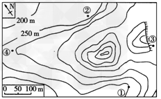 1.甲组队员准备在图示地区宿营,为避免突发的山洪,你认为在①②④三地中,最不适宜宿营的地点是