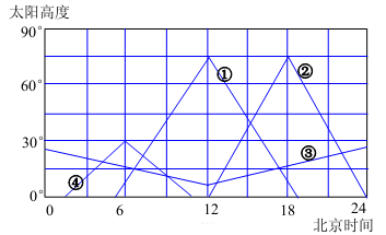 4、单选题 读5月某日四个城市的太阳高度日变化曲线图,四地中: