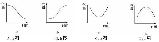小题3:图中,正确反映该天气系统过境期间,n地温度变化过程的是……(?)