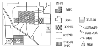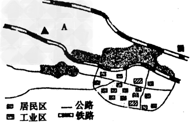 (1)若图中工业区布局合理,A、B中属于新工业区的是___________,其布局的主要区位条件有_________、______________。