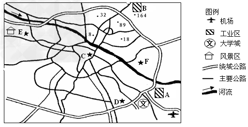 (3 )该市拟建高级住宅区和大型仓储超市各一个,请在C 、D 、E 、F 中进行合理选择,并说明理由。