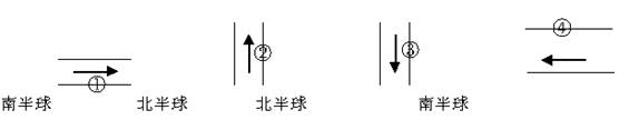 (3)此时,赤道与晨昏线相交点的经度分别为 (2分)