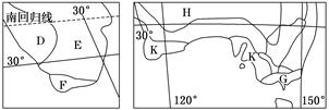 1.图示各区域中,具有相同气候类型的是2.图中G地气候类型的成因是