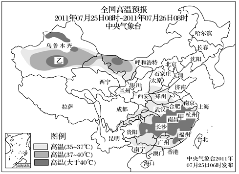 4、单选题 下图为全国高温预报图,造成图中甲、乙两区域高温天气成因的叙述, 正确的是( )