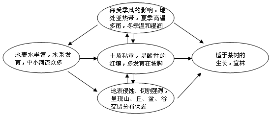 小题1:根据图示的相互作用关系,影响地理环境各要素特征的根本原因是气候,是由于大气环流形式而影响。