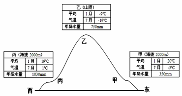 1.据图中信息判断,下面有关该山地的正确叙述是2.根据气温和降水状况判断,在西坡山麓最可能分布的自然带是