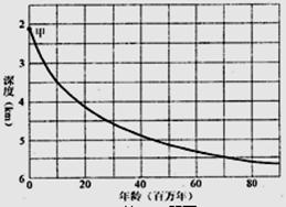 1、单选题 读海底深度与其岩石年龄关系图,回答下列各题。