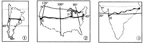 1.直接根据图示的经纬度位置和海陆轮廓判断,①为阿根廷,②为美国;③为印度。根据图示的大陆桥分布,②图东端城市是纽约,而不是美国的首都,也不位于河流中下游的冲积平原地区,A、B项错误;①图东端城市受地中海气候影响;②图东端城市受地中海气候影响,③图东端城市受热带季风气候影响,C项正确。③图西端城市受季风环流影响,而不一定为寒流,D项错误。