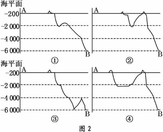 【小题2】下面哪一幅是过AB线所作的地形剖面图( )