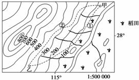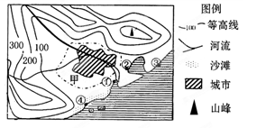 1.为发展旅游业,该区域内拟建一个大型海滨浴场,最佳位置应在2.图中甲城四周虚线范围内最适宜种植的是