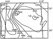 2、综合题 如图是某区域太阳年辐射总量等值线(单位:百万焦耳/平方米.年)图。据此回答下列问题。(18分)