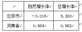 (1)根据表A中数据,说明北京市与河南省人口增长的差异,试分析造成差异的主要原因。(4分)