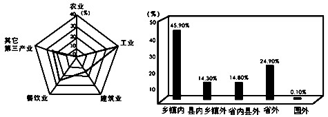 材料:2000年中国农村劳动力产业和空间转移的流向及2000年中国农村劳动力产业和空间转移的流向(占总量比重)