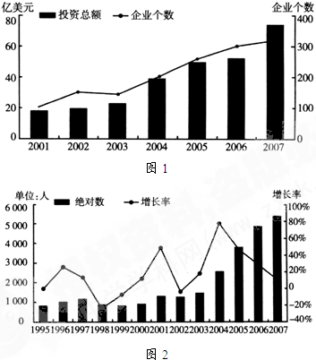 3、单选题 读2001—2007年我国G城市R国外资企业注册及投资情况坐标图和1995—2007年我国G城市R国人口数量及增长率坐标图。回答各题。