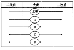 2、综合题 该图是“二战”前后人口迁移模式图(注:图中箭头表示人口迁入或迁出的方向),读图完成下列要求(7分)