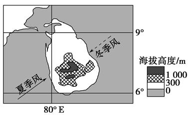 小题2:该国为热带季风气候,中部有山地,冬季该国吹东北风,东侧在东北风的影响下,气流受地形抬升,形成地形雨,降水丰富,夏季该国吹西南风,东侧处在西南风的背风一侧,气流下沉,不易形成降雨,降水较少,故答案选C。