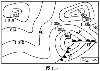 【小题2】图中A、B处气压中心控制地区,昼夜温差较小的是 处,原因是 ________________________________________________。(第二空3分,共4分)