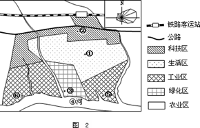 1、单选题 图2是我国南方平原地区某城市功能分区图。读图,完成: