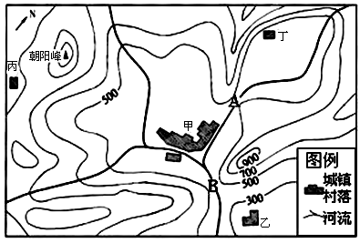 (4)影响聚落发展的自然条件主要有地形、土壤、水源等,图中甲处位于盆地中心,地势平坦开阔,有利于城镇的建设和发展;位于河流交汇处,水陆交通便利,水源充足,城镇供水方便。