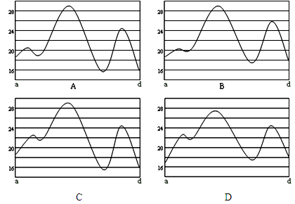 【小题1】图示等高距是20米,a处海拔大约是180-200米,d处海拔大约是180米;从a到d途经一个280-300米山脊,和一个240米山脊;还经过一个160-180米的山谷。可判断B图正确。