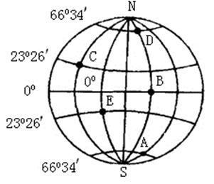 3、综合题 读图,C点所在经线为本初子午线,当A点正午太阳高度角为0°时,回答下列问题。(10分)