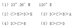 (2)分析图中B.C.D.E四点的正午太阳高度角,按大小顺序用“>”排列出_________?_。?