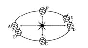 (1)在图中地球公转轨道上画出公转的方向(见图)
