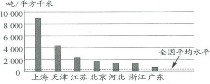 2、单选题 下图为2010年我国部分省级行政区的单位面积煤炭消耗量,读图完成下面小题。