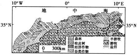 1、单选题 下图为“某区域植被与农业分布示意图”,读图完成1~2题。