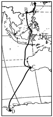 5、单选题 2005年11月18日,执行我国第22次南极科考中山站和南大洋任务的115名队员乘“雪龙”号考察船从A港口出发,沿途经B、C两港口,将于12月18日到达我国南极考察站D。读图回答下列23-25题。