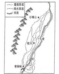 材料二宁夏平原排灌渠道分布示意图。