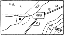 4、综合题 “我国北方某城镇周围农业布局图”回答:(8分)