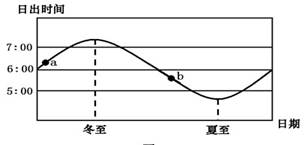 小题2:结合图示明显看出,该同学观测的起始日6:00日出,该日昼夜平分,而且是冬至前的昼夜平分日,所以起始日为秋分日,图中a点处于从秋分至冬至过程中,而且位于秋分后很短的一段时间,所以最有可能的是国庆节,故答案选C。