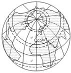 3、单选题 该图所示为以38°N,0°为极点的陆地相对集中的“陆半球”(另一半球为“水半球”)。读图回答问题。