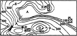 5、单选题 读等高线地形图,回答问题