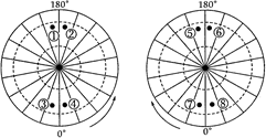 【小题1】由以上两幅地球自转图可以看出,左图是按逆时针方向,是北半球,所以C、D两个选项排除,根据经线段可以看出,图中共分18份,所以每一份是20°,③和④的经度都是小于20°,所以两点位于东半球,而①和②的经度都要大于160°,位于西半球,故选B.
