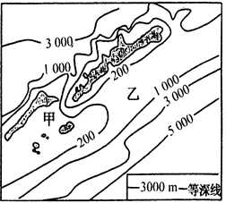 本题解析:(1)甲、乙两地海底地形根据等高线和等深线的特征分析。