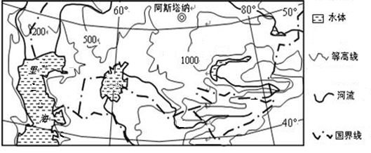 3、综合题 哈萨克斯坦是世界最大的内陆国,也是申办2022年冬奥会的我国唯一的竞争对手。读“中亚部分地区”地图与相关资料,回答问题。(36分)