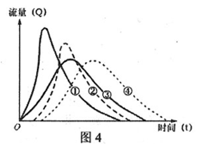 小题2:图5示意流域形状对流域汇流的影响。在其他条件相同时,不同流域形状会产生不同的汇流过程。流域形状甲、乙、丙分别对应汇流过程正确的是(? )