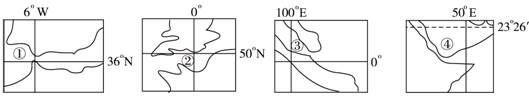 2、单选题 下图表示回归线沿线的海陆分布。读图回答题。