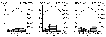 2、单选题  该图是三个城市的气候资料,据此回答。城市①、②、③可能分别是: